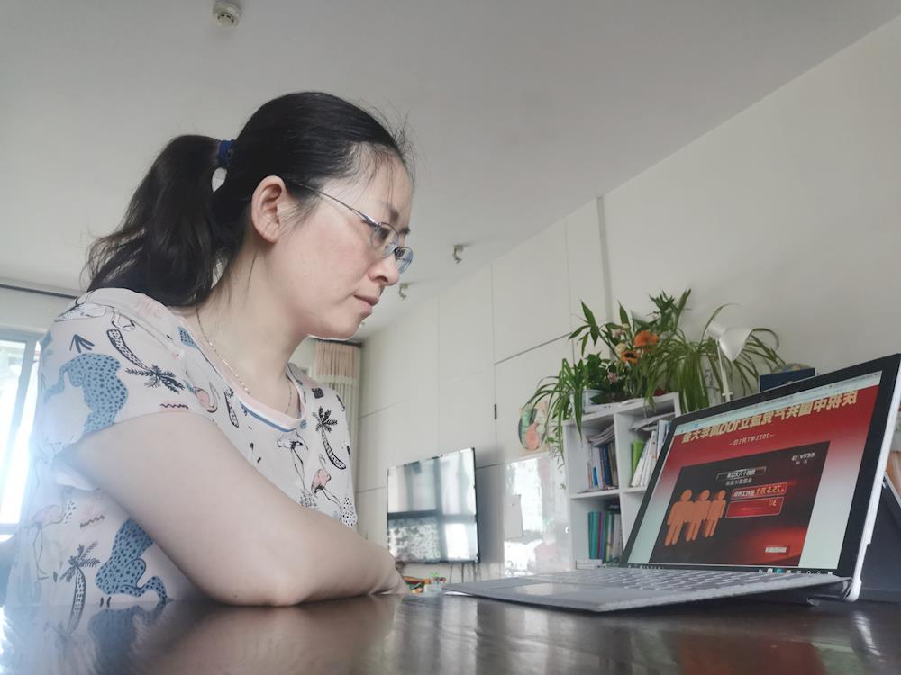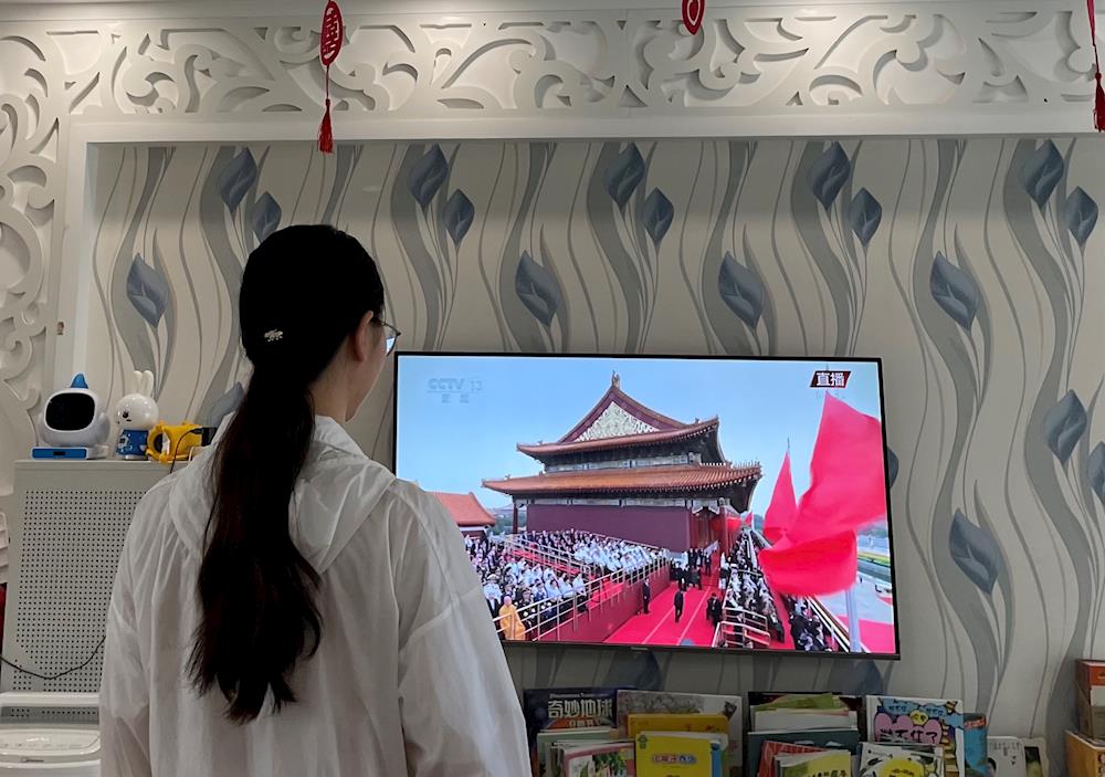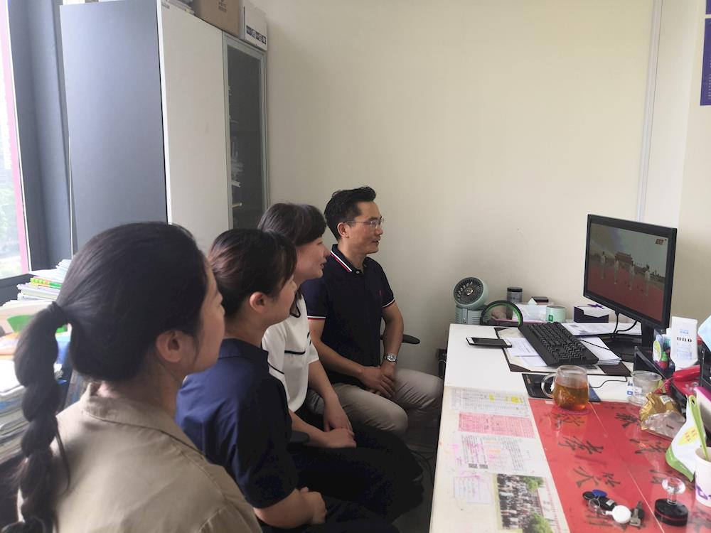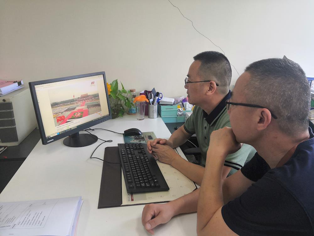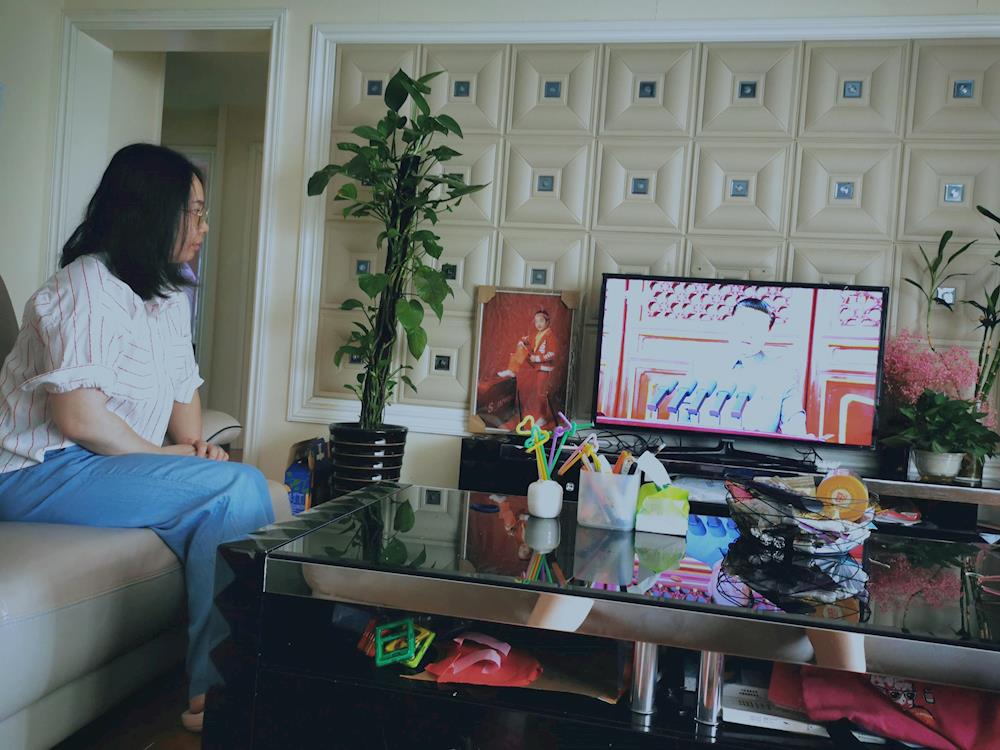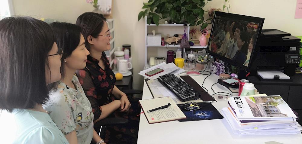 全体行政聚集四楼会议室,专注观看;党员教师坐守电视机前,凝神收看。