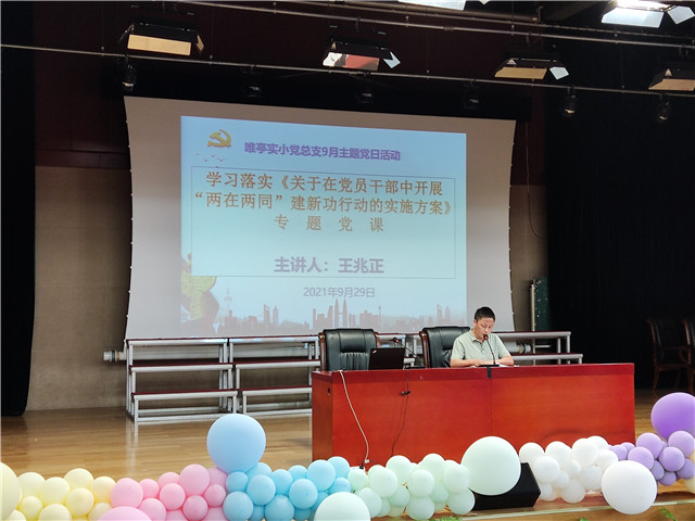 为深入贯彻学习习近平总书记“七一”重要讲话精神,积极响应省市区关于“两在两同”建新功的号召,进一步推动学校全体党员强化改革共识、凝聚发展力量、切实扛起教书育人的担当和作为。9月29日下午1点,唯亭实小党总支在学校星空剧场举行了“争当先锋做模范 '两在两同'建新功”主题党日活动。