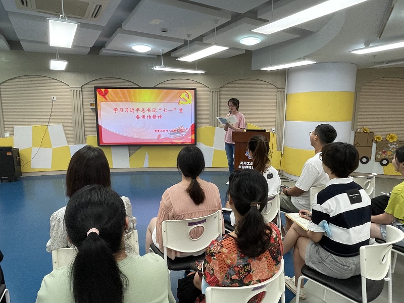 9月2日下午新馨花园幼儿园纪检委员王雪莉园长以及党员代表朱艺婷老师分别带领全体教师深入《学习习近平总书记“七一”重要讲话精神》,强化理论武装、把准方向导向,继续践行为人民服务的思想理念,以崭新的姿态迎接新学期的新征程。党员老师们纷纷表示,要努力从党的百年奋斗历程中汲取智慧和力量,将其转化为推动教育事业高质量发展的强大动力。