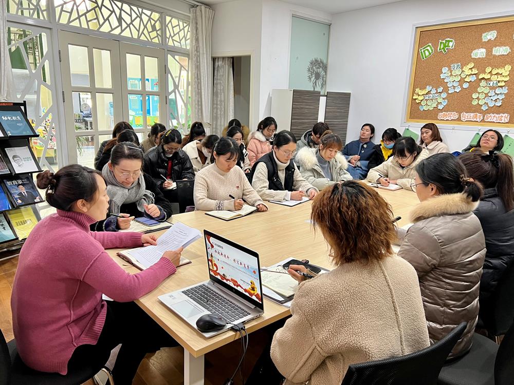 余蓉指出:作为一所省优质老牌幼儿园,我们要把学习到的会议精神贯彻落实到我们的中心工作上来,结合今年12月9日教育部等九部门印发的《“十四五”学前教育发展提升行动计划》,进一步明确我们下阶段工作的重点。全体教职工要聚力在“全面提升保教质量”上下真功夫,持续推进“蓓蕾花开”书记项目、“课改先锋”创新项目、“惠民到家”阵地项目的开展,坚持以游戏为基本活动,加快实现幼儿园与小学科学有效衔接,全面提升科学保教水平,努力办人民满意的学前教育。