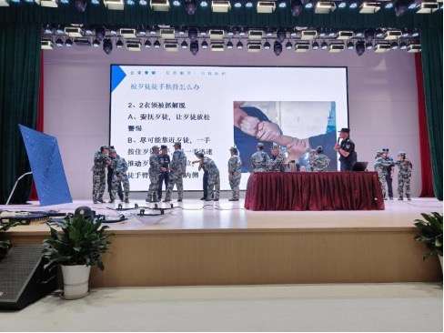 体能训练是军训的基础环节。学校高度重视训练的科学性与实用性,摒弃了单一的队列练习模式,引入了更具针对性的训练方法与技巧。训练场上,各连队方阵在完成基础队列动作的同时,还进行了特色科目展示,如军体拳、匕首操、战术基础动作等,充分展现了新生们的蓬勃朝气与训练成果。此外,学校专门设置了“校园安全防暴专题与实操”环节及应急预案处理演练。