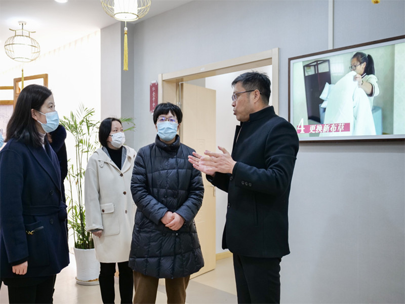 调研组首先来到仁爱学校酒店客房基地,观摩职高班酒店服务与管理专业学生的客房实操,与师生亲切问好。在伟创力实验室,范里向大家介绍实验室的环境设计、设施设备以及学校与伟创力电子技术苏州有限公司在校企合作方面工作情况。截止目前,仁爱学校已经有多位毕业生在伟创力公司、尼盛万丽酒店等企业成功就业,学校已成为苏州市残疾人职业技能培训基地,调研组充分肯定学校在特殊学生职业技能培训方面的创新举措。