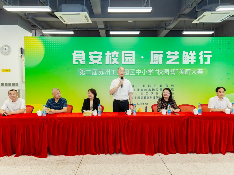 2025年8月27日上午,苏州工业园区斜塘学校的食堂化身为高手云集的“顶级厨房”,锅碗瓢盆的交响曲奏响了美食的乐章。由园区教育局主办、园区市场监督管理局协办、斜塘学校与园区教育科技服务有限公司承办的2025年度苏州工业园区中小学“校园餐”美厨大赛在这里隆重举行。来自园区各中小学的41位食堂厨师代表同台竞技,以一场精彩纷呈的厨艺对决,诠释了校园餐饮的匠心精神与专业水准。