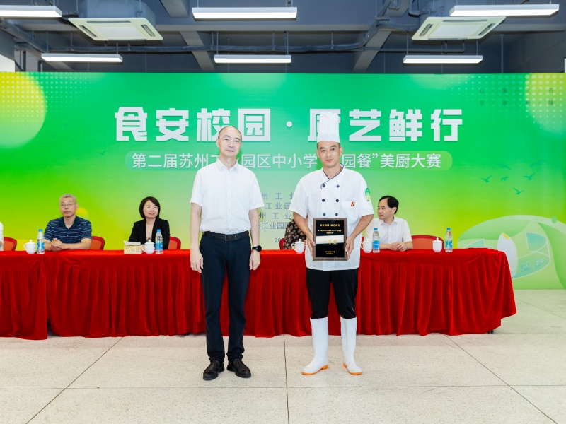 园区教育局局长顾纯青在赛后作总结发言。他表示,每一位食堂工作者都是教育保障体系中不可或缺的“暖心工匠”。教育局将持续推动校园餐服务的提质增效,将“舌尖上的安全”与“舌尖上的幸福”作为双重目标。他希望各校以本次大赛为新起点,将此次的交流成果转化为今后食堂餐桌上的实际提升,共同守护好孩子们“饭碗里的未来”。