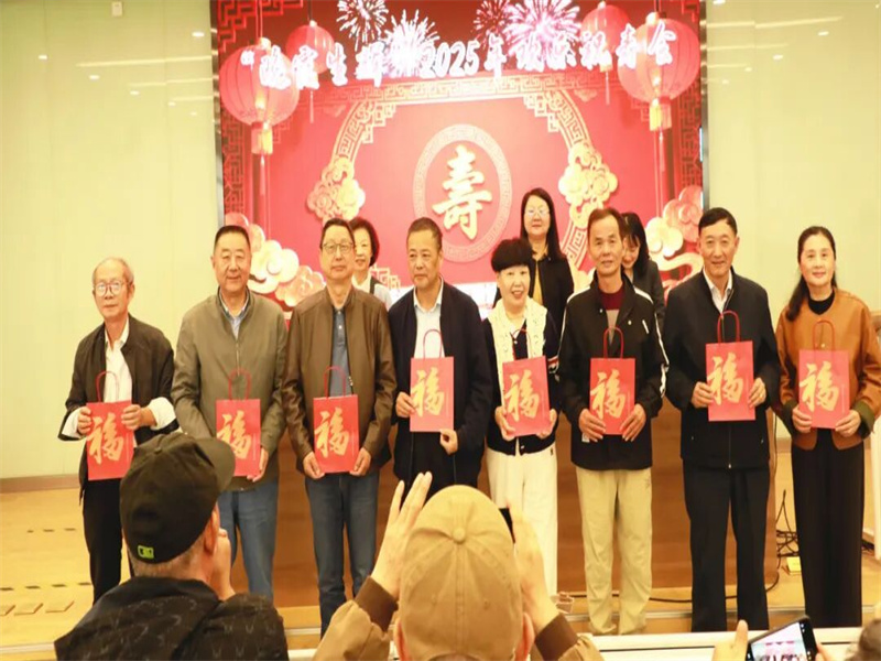 在温馨的乐曲中,教育局领导向全体寿星送上贺礼。各校退教工作负责人作为代表上台接受这份饱含深情的节日礼物,现场洋溢着感动与欢笑。