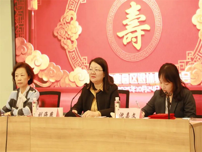 园区教育局副局长刘海燕温馨致辞,以“天有凉意,心有暖意”破题,简要介绍了园区教育的发展盛况。她借重阳典故,向全体退休教师致以节日的问候:“愿你们岁岁安康,山河长青”。最后,刘海燕副局长提出殷切期望,她表示老教师是教育事业的 “活宝库”,希望大家在身体允许的情况下,继续发挥余热。在德育工作中,以丰富的教学经验引导青少年树立正确价值观;在社区调解中,用耐心与智慧化解邻里矛盾,为社会和谐贡献力量。