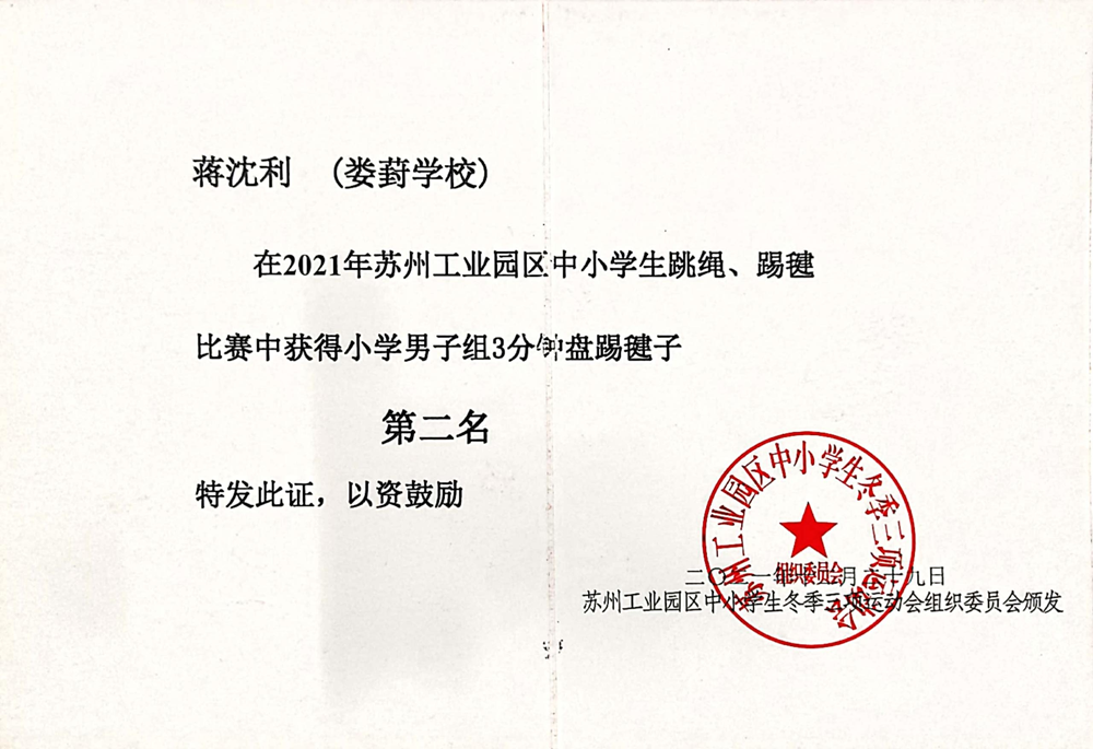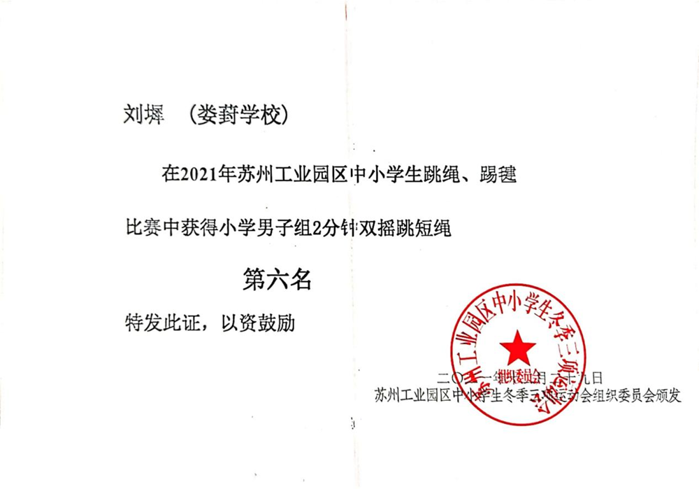 身轻体“毽”,“绳”彩飞扬——娄葑学校在2021年园区中小学生冬季三项比赛中取得佳绩