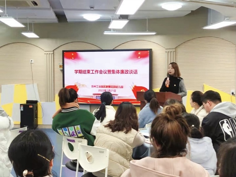 虎年大吉喜气临,昂首摆尾迎春来。时光荏苒,紧张而忙碌的一学期即将结束,在全体教职工的共同努力下我园各项工作顺利完成,成绩斐然。2022年1月21日下午,新馨花园幼儿园召开了学期结束工作会议,为过去的一学期划上圆满的句号。