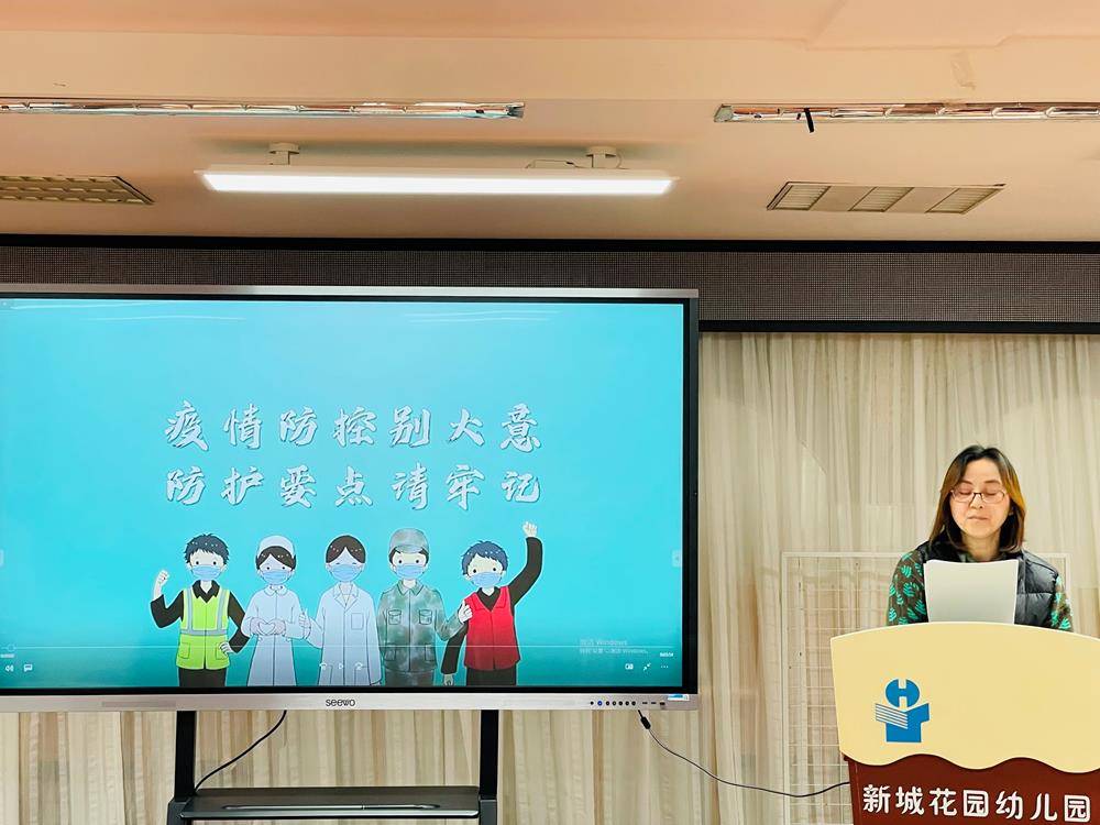 为了最大限度降低疫情带来的影响,使幼儿和教职工度过一个平安、健康、快乐、有意义的假期,副园长朱丽君根据《关于做好2022年苏州工业园区中小学幼儿园寒假工作的通知》文件精神,针对疫情常态化防控和寒假工作做了详细的安排,并组织全体教师观看健康教育宣传视频。