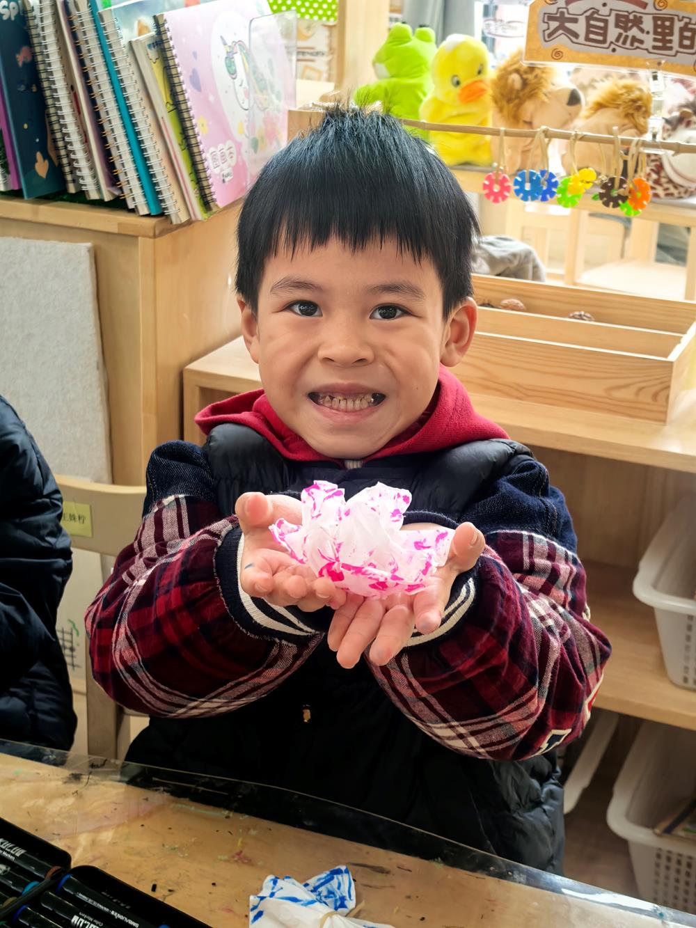特别的爱给特别的你,你的笑脸逃不过我的眼睛。笔笔皆心意,朵朵是欢喜;黏土蕴爱意,塑意寄常欢;创意藏巧思,笑颜胜千金;一撕一贴间,心意即刻浮现。