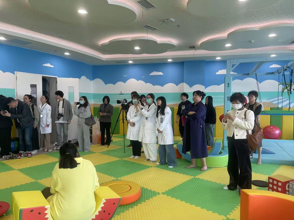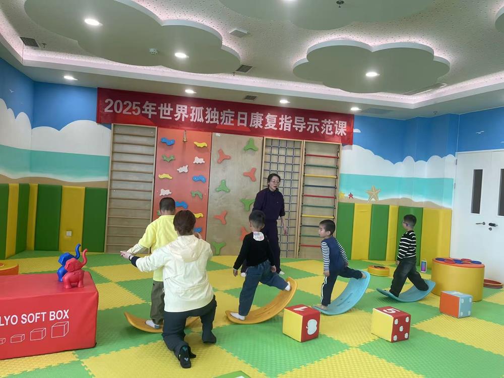 在学校的“医教体研”模式架构下现场开展世界孤独症日康复指导示范课,课程内容主要围绕激活孩子动机、活动课程多感官的参与和游戏规则理解设计,助力孩子学习技能习得。博爱学校依托二十余年特殊教育专业积淀,建立了涵盖早期筛查、发展评估、个性化康复与终身教育计划以及家庭支持的多维度服务体系,其临床实践始终遵循国际前沿的循证医学框架,通过实证研究与科学干预,有效的提升孤独症儿童的社交互动、语言沟通、认知功能、问题解决及适应性行为等关键发展领域的能力提升,切实保障了特需群体的全人发展权益。