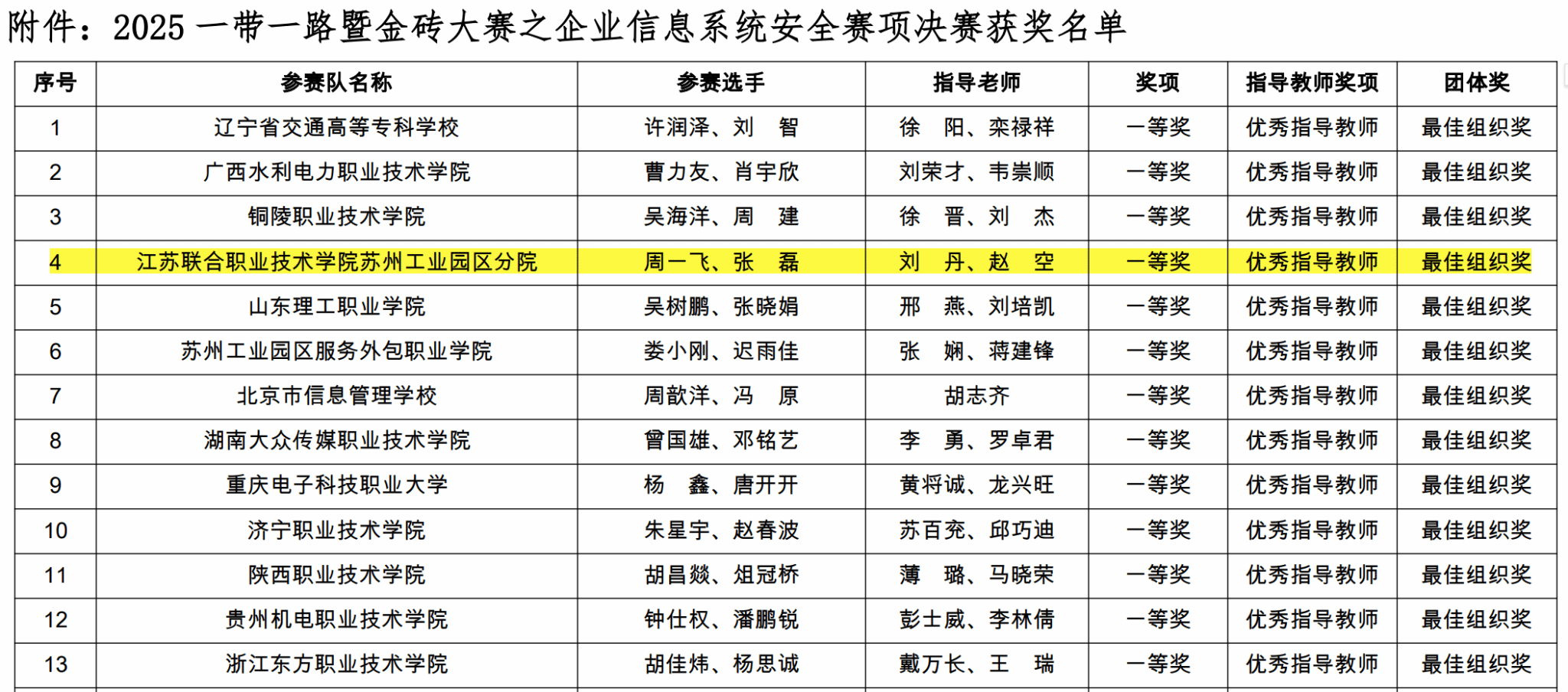 我校学子斩获2025一带一路暨金砖国家技能发展与技术创新大赛之第三届企业信息系统安全赛项国赛一等奖