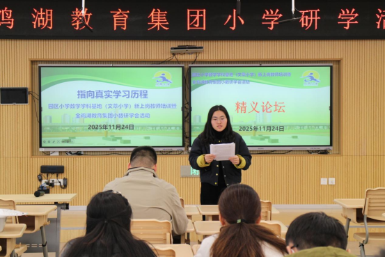 11 月 24 日下午,园区小学数学学科基地(文萃小学)青年教师教学研讨暨金鸡湖教育集团小数研学会活动顺利开展,园区三年内小学数学青年教师50余人参加活动。活动特邀江苏省特级教师、正高级教师刘玮校长参与活动。