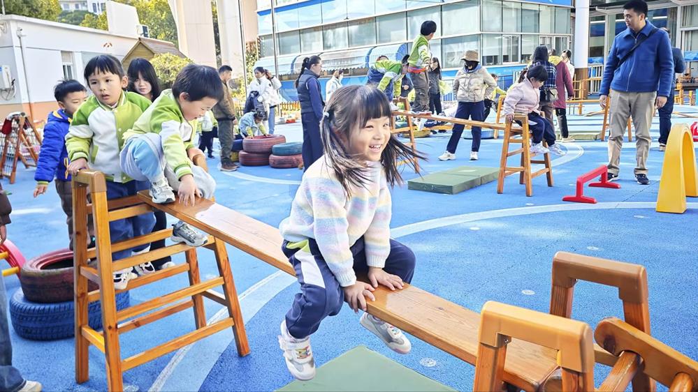 晨间音乐悠扬,操场成了欢乐的成长天地。小脚轻快蹦跳,小手奋力伸展,每次勇敢尝试都似新芽破土,迸发成长的力量。爸爸妈妈化身亲密伙伴,和我们奔跑嬉戏,共享运动之乐。暖阳下,呼吸与欢笑交织,大操场上、攀爬架旁、滚轮车边……绘就出一幅幅爱意满满、活力四溢的画卷。