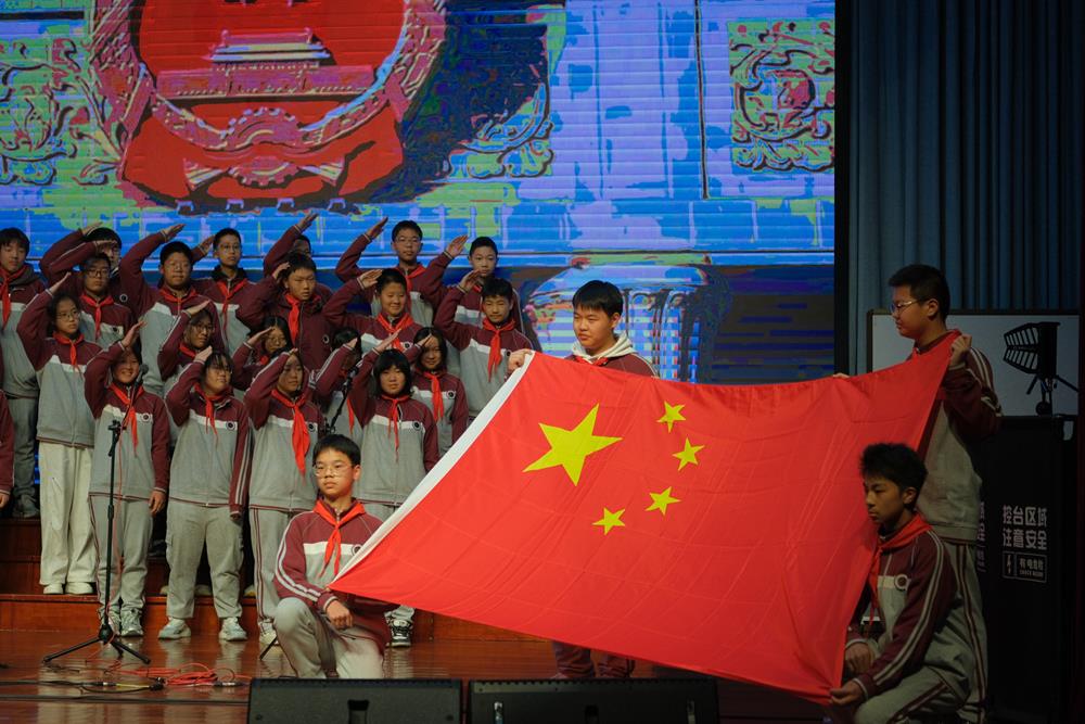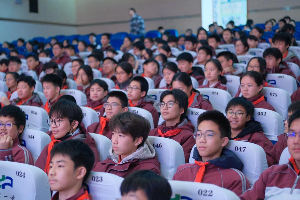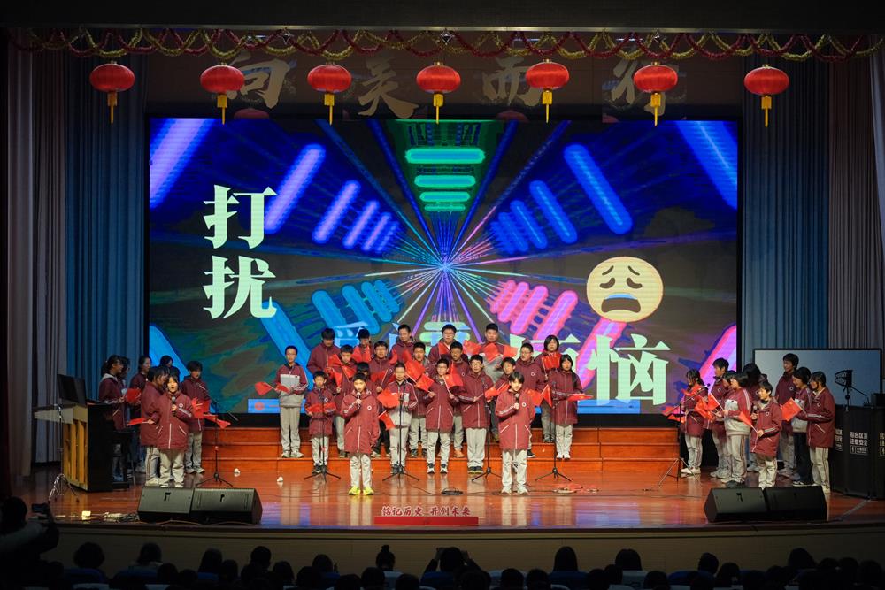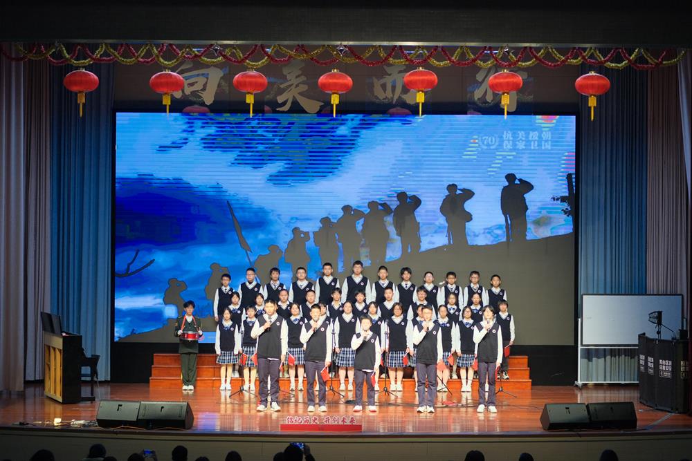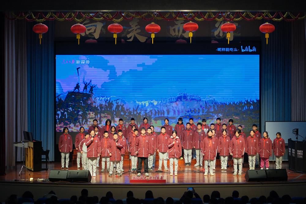 学校领导、评委老师们与全体初二师生齐聚一堂,共同回望90年前北平学子的热血呐喊,见证新时代少年的爱国传承。