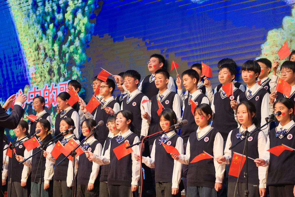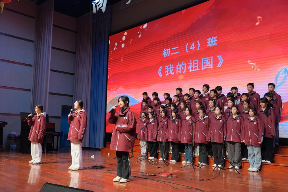 “一条大河波浪宽,风吹稻花香两岸”,初二(4)班的同学们将《我的祖国》的恢弘与温暖展现得淋漓尽致。