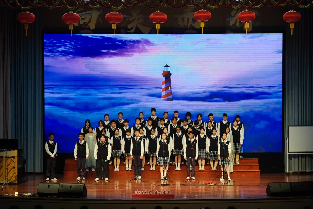 初二(7)班的同学们诠释《少年》的初心与坚守,旋律中满是意气风发的模样。