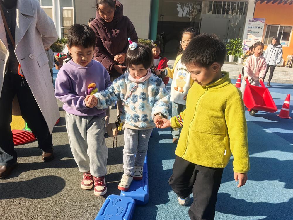 平衡区里,孩子们在哥哥姐姐的鼓励与守护下,专注地走过平衡木;钻爬区中,他们跟随着前方哥哥姐姐的身影俯身穿越,犹如小小探险家;攀爬架前,勇敢的身影不断向前,眼中满是喜悦;大草坪上,花球在萌娃与哥哥姐姐的相互传递间滚动,欢声不断。